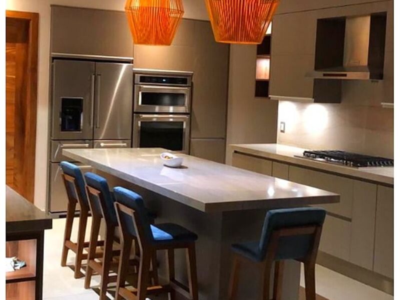 Cocina lindísima con unos clientes encantadores con los cuales trabajamos por varios meses. Los colores seleccionados dan muchísima calidez y elegancia al ambiente.