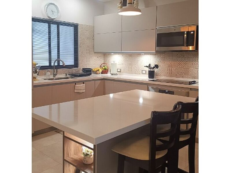 En esta cocina se puede ver la importancia de la iluminación en los espacios de trabajo y módulos decorativos.