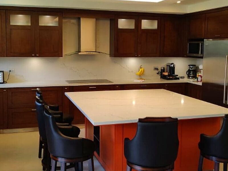 En esta cocina se trabajó en madera Lenga con lacado en poliuretano y para la isla se lacó en el tono escogido por el cliente. ¿Qué les parece esta combinación de colores?