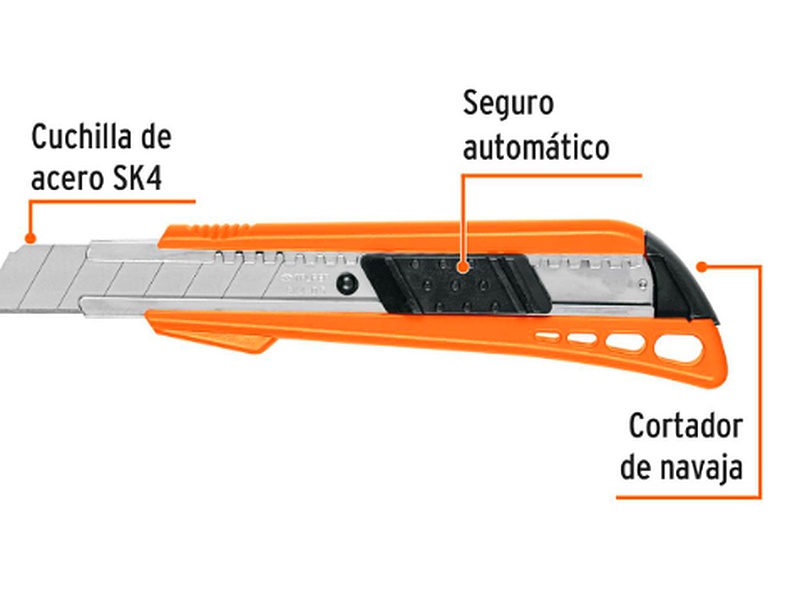 Cutter plástico de 18mm, seguro automático y cuchilla de acero SK4.