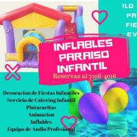 Servicio para fiestas infantiles, catering infantil, alquiler de toldos, inflables, pintacaritas