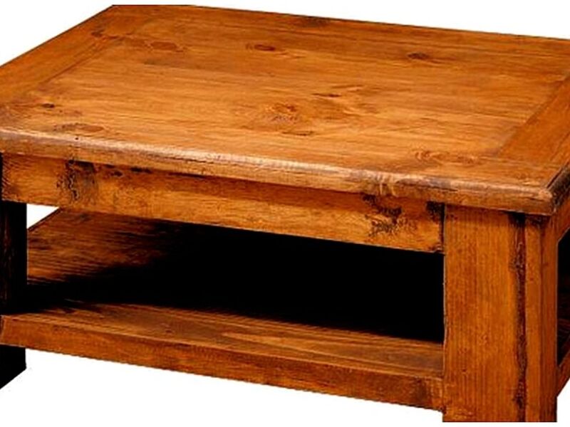 Mesa de madera maciza, de diseño simple y rústico, ideal para complementar salas de estar. Su superficie amplia ofrece espacio funcional y estético.