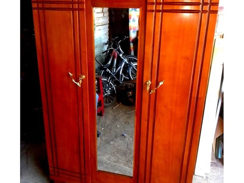 Un armario espacioso y funcional hecho de cedro, con un espejo incorporado, que combina practicidad y belleza en el dormitorio.