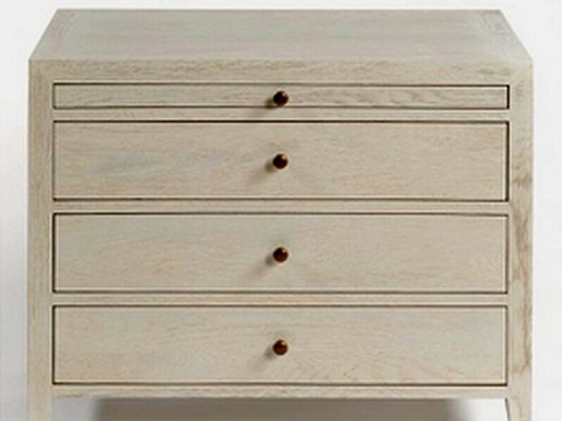 Cómoda elegante construida en roble blanco, ofreciendo un mueble funcional y estéticamente agradable.