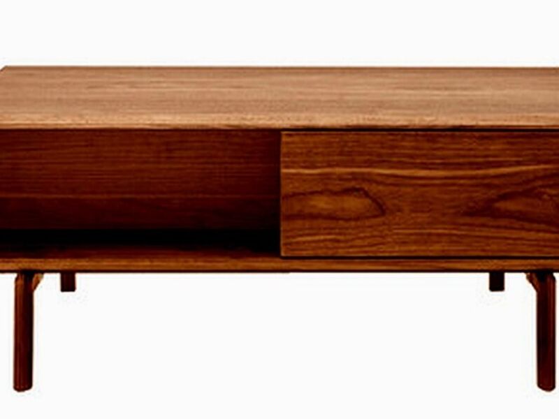 Una mesa de centro con compartimentos o cajones integrados para almacenar revistas, controles remotos u otros objetos.