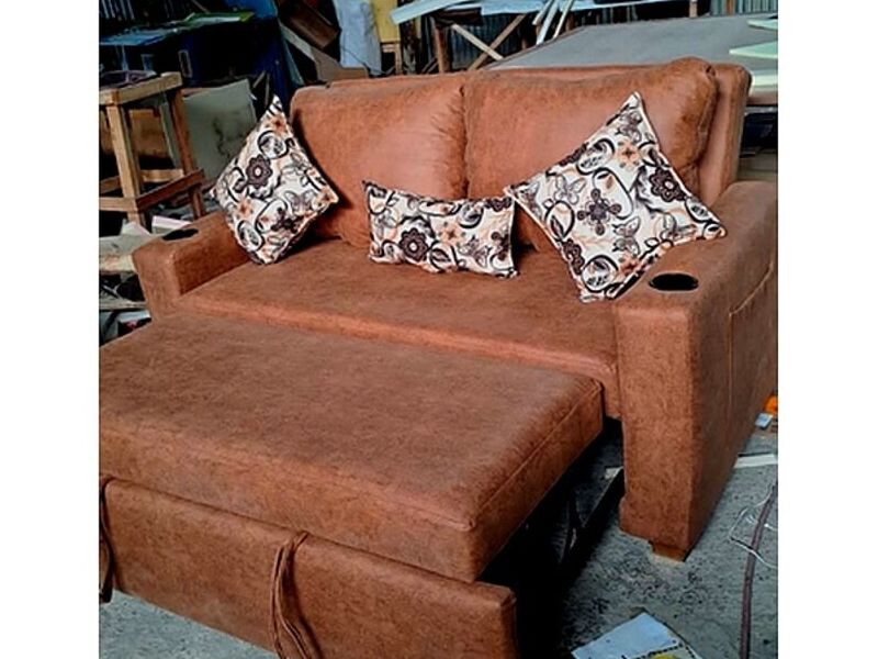 Sofá cama. Tela microcuero.
