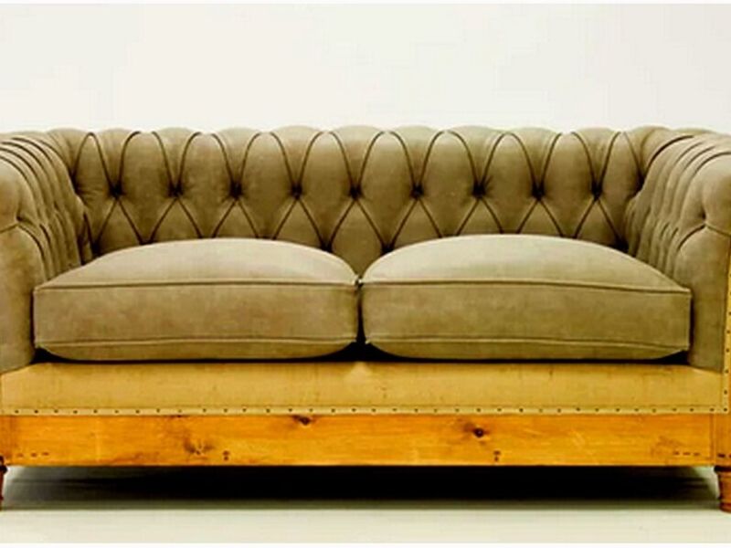 Un sofá clásico con tapicería capitoné y brazos enrollados para un toque elegante.