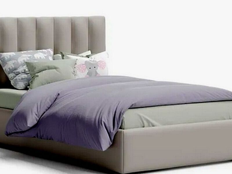 Una cama tapizada diseñada específicamente para niños, con colores vibrantes y detalles divertidos para crear un ambiente alegre en la habitación.