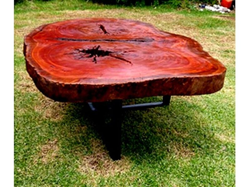 Una mesa de centro hecha de troncos de madera reciclada o rústica, que aporta un toque natural y orgánico a la sala de estar.