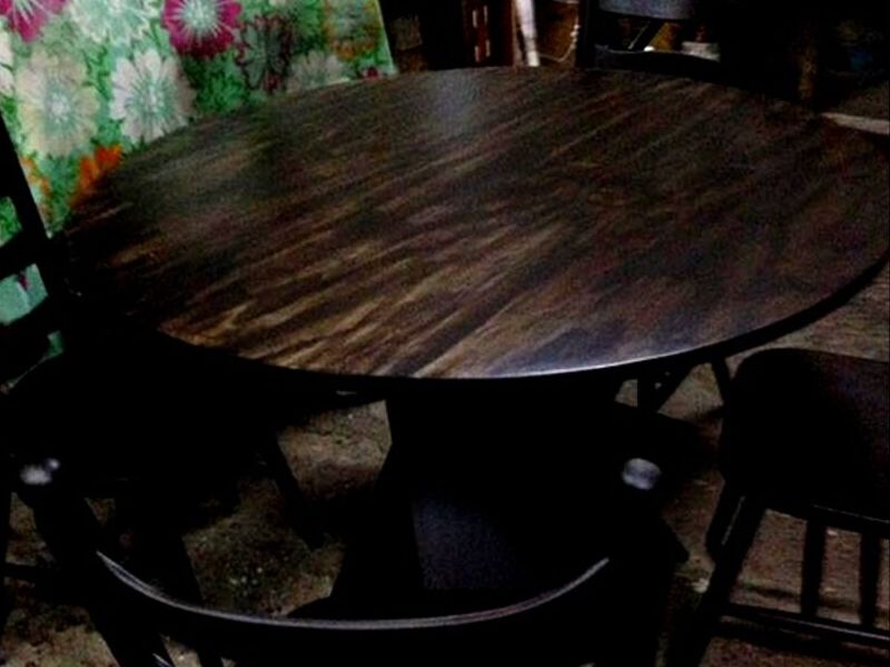 Mesa de madera cenizaro con acabo de tinte oscuro.