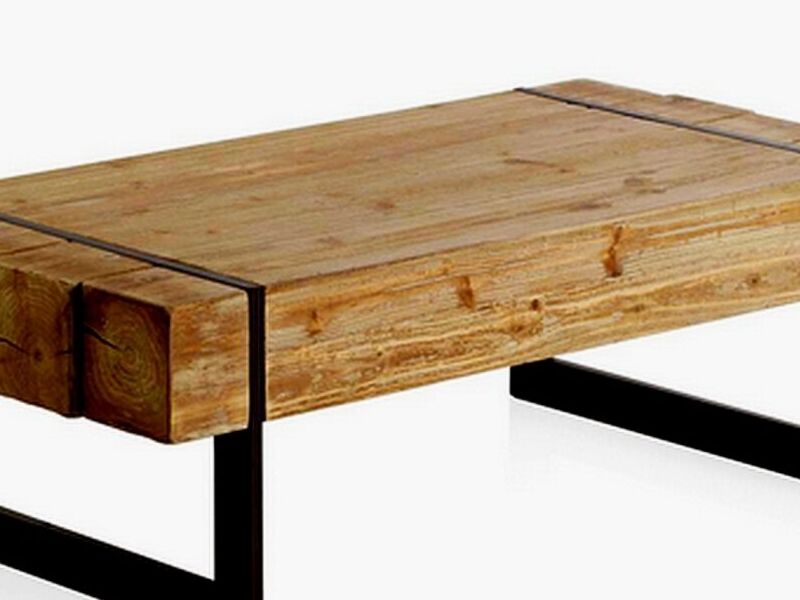 Mesa de centro con superficie de madera y estructura metálica, creando un equilibrio entre lo rústico y lo contemporáneo.
