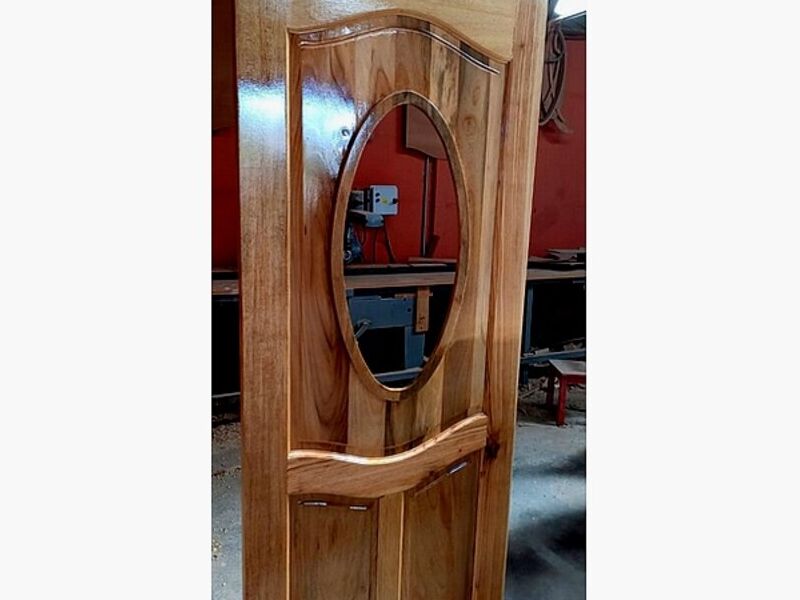 Puerta de ovalo, fabricada en laurel con acabado natural brillante.