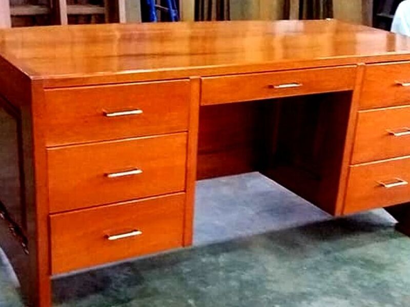 Escritorio de cedro para oficina en casa, combinando elegancia con funcionalidad.