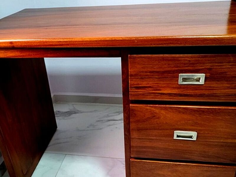 Escritorio funcional y estilizado en guanacaste, con cajones integrados para un espacio de trabajo ordenado.