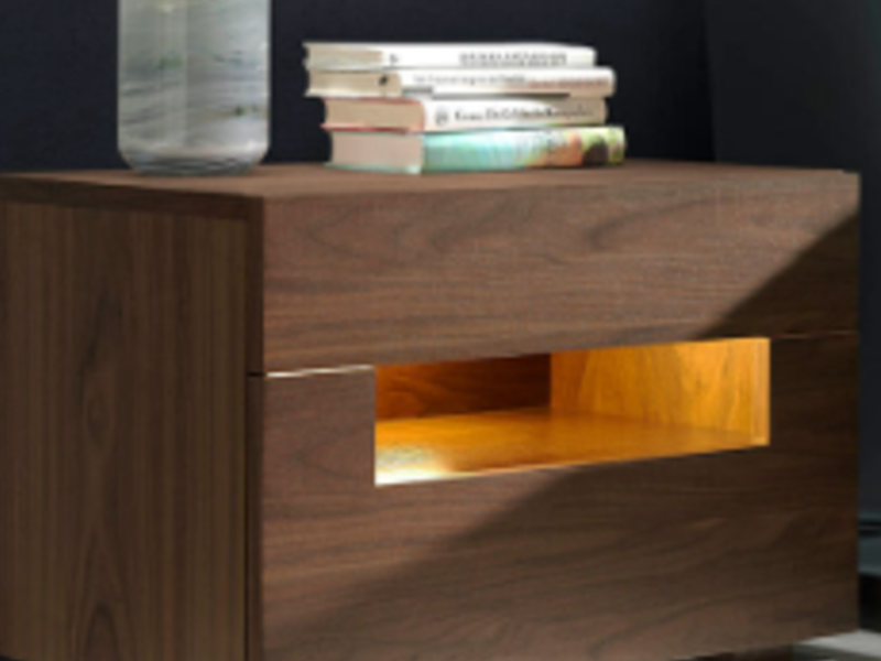 Una pequeña mesa que se coloca junto a la cama para sostener lámparas, despertadores, libros u otros objetos personales.
