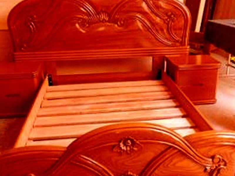 Una cama de cedro con detalles tallados a mano, agregando un toque artesanal al dormitorio.