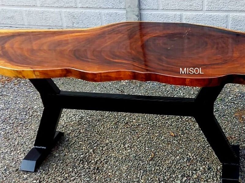 Mesa rústica para cuatro personas, estilo industrial con acabado en resina epoxica.