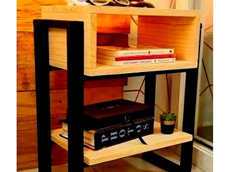 Mesita de noche madera pino.