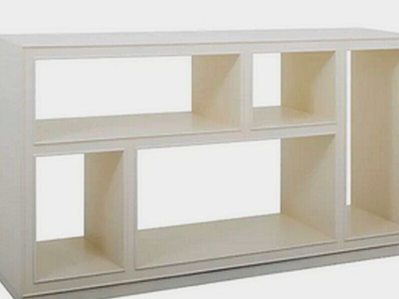Mueble bajo con estantes para organizar libros o exhibir decoraciones.