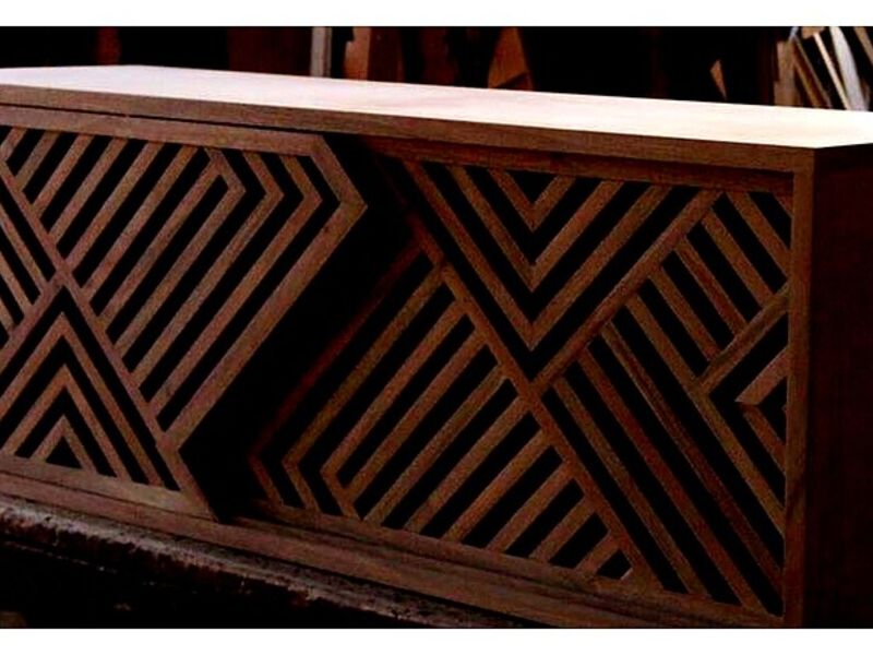 Consola contemporánea en madera de cenízaro y acabado natural crudo.
