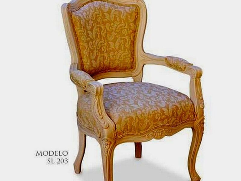Sillón Luis XV, con un estilo Rococó, de respaldo cóncavo aviolinado y patas Cabriolé.
