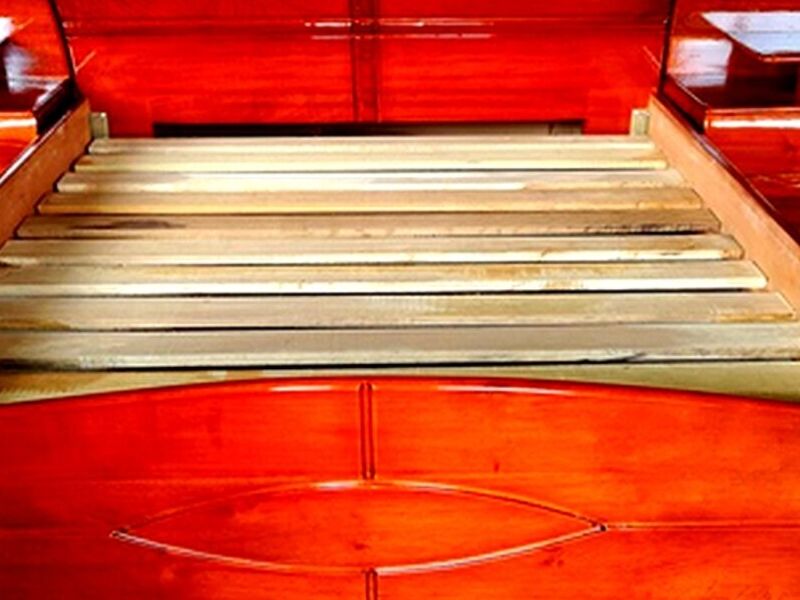 Cama de madera robusta y elegante para un descanso reparador.