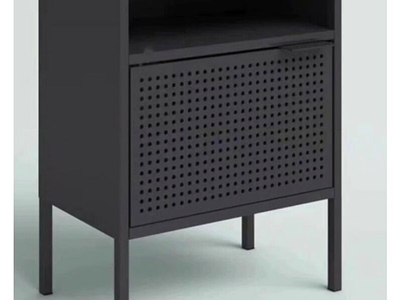 Te traemos esta mesa de noche de estilo industrial, con un robusto marco de metal y detalles en su diseño que aporta un toque urbano y moderno a tu dormitorio.