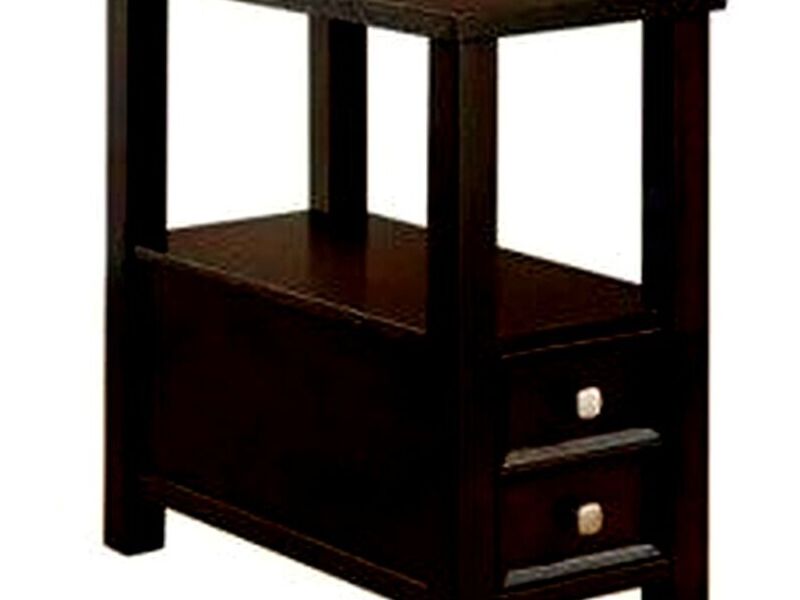 Mesa Lateral acabado en capuchino con dos gavetas.