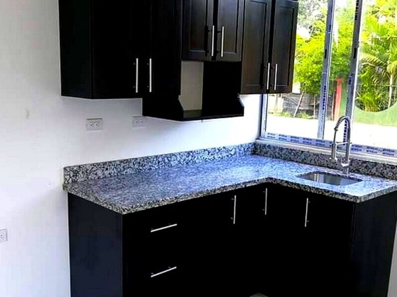Mueble cocina de cedro tinte nogal oscuro.